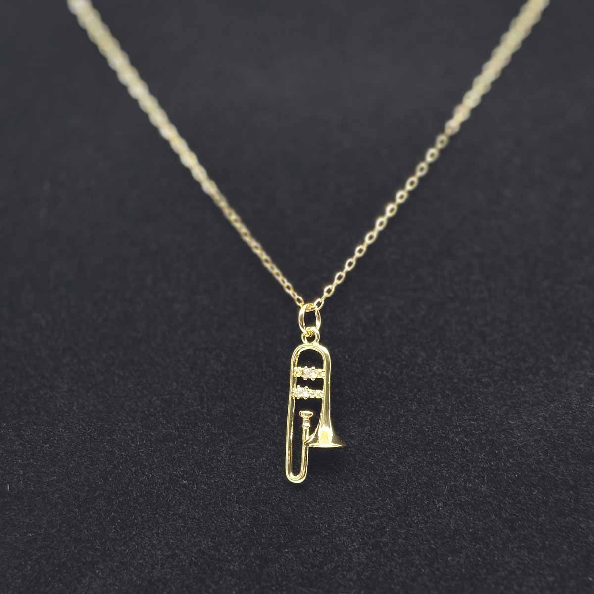 Affirmez votre passion avec ce collier trombone miniature en or 18k, inspiré des lignes emblématiques des cuivres. Son pendentif finement détaillé et lumineux reprend la coulisse et le pavillon avec élégance, pour un bijou immédiatement reconnaissable.