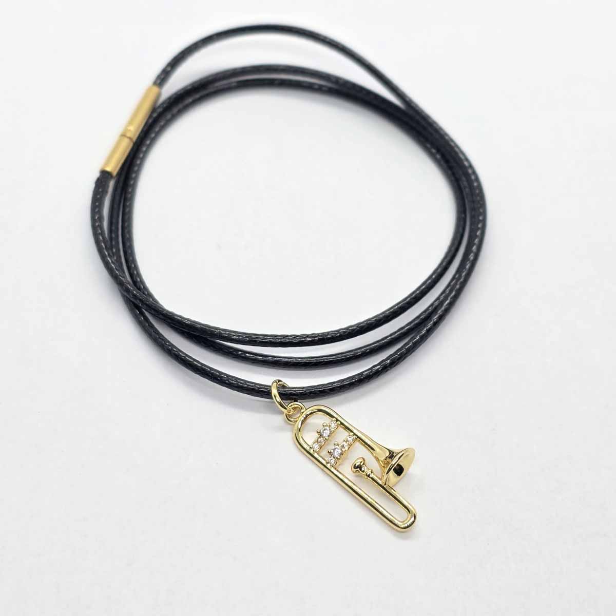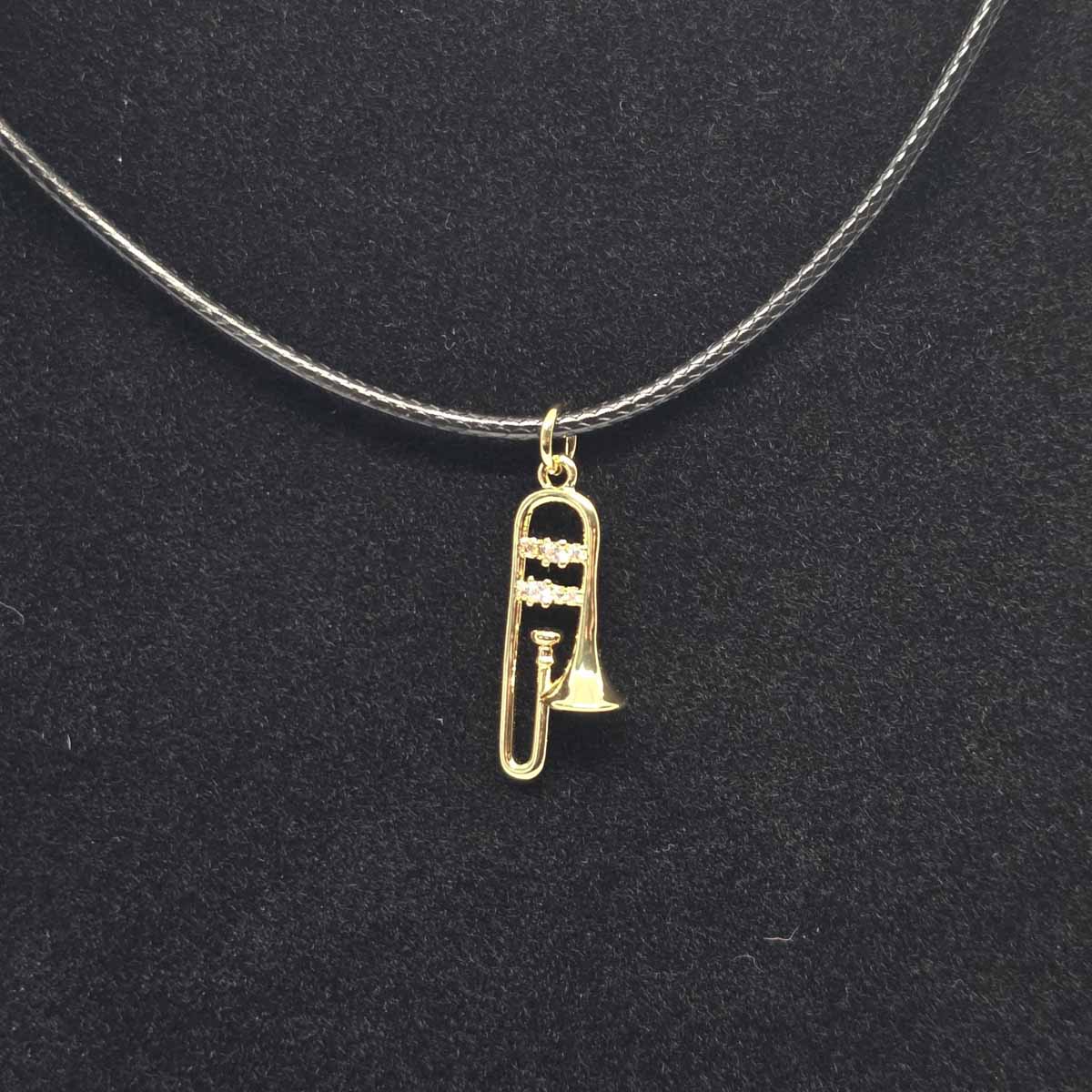 Ce collier trombone en or 18k célèbre l’élégance et la puissance des cuivres. Son pendentif miniature finement travaillé reprend les lignes caractéristiques de l’instrument, pour une pièce expressive et raffinée.