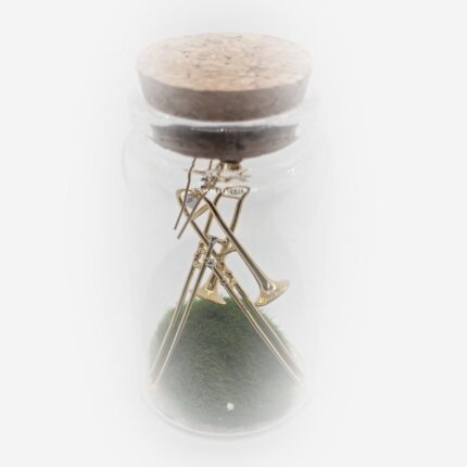 Le trombone, réduit à l’essentiel, conserve ses courbes emblématiques tandis que le strass apporte une touche de lumière délicate.